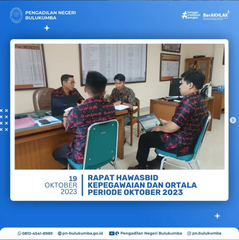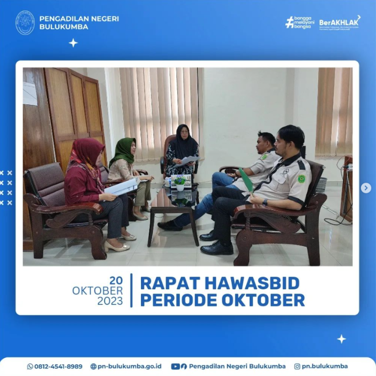 Monitoring dan Evaluasi Hasil Pengawasan Bidang oleh HAWASBID Pengadilan Negeri Bulukumba Periode Oktober 2023