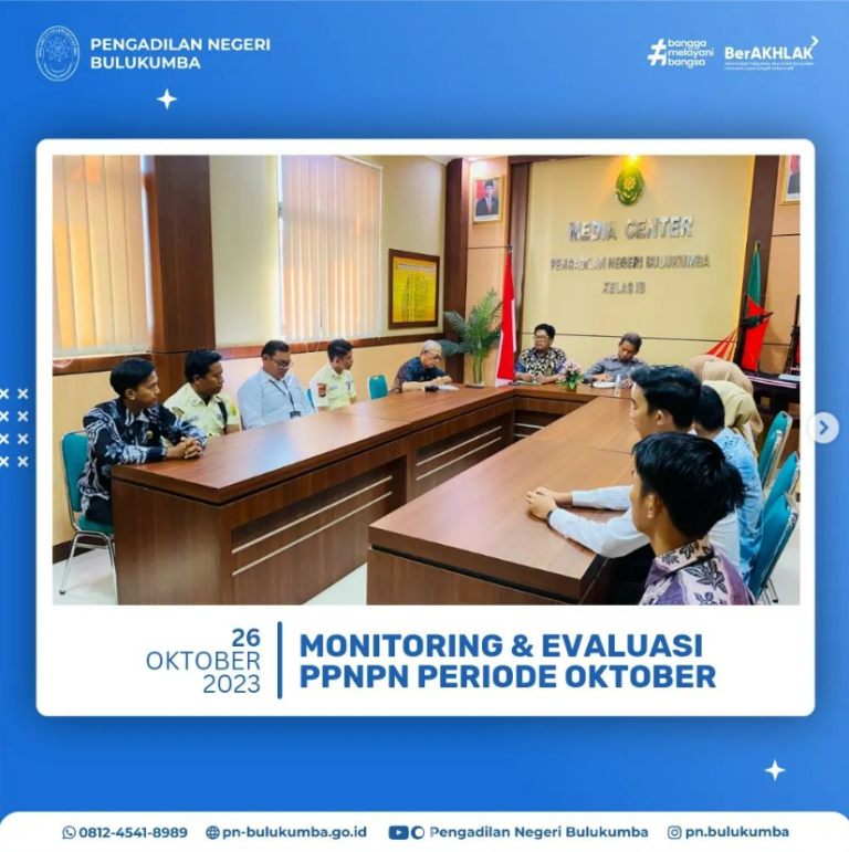 Monitoring dan Evaluasi PPNPN Periode Oktober 2023, dipimpin oleh Ketua Pengadilan Negeri Bulukumba Bapak Dr....