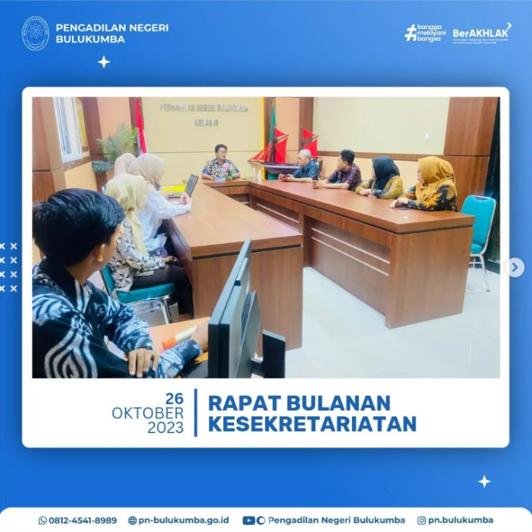 Rapat Bulanan Kesekretariatan periode Oktober 2023 dipimpin oleh Sekretaris Pengadilan Negeri Bulukumba Bapak M. Ridwan...