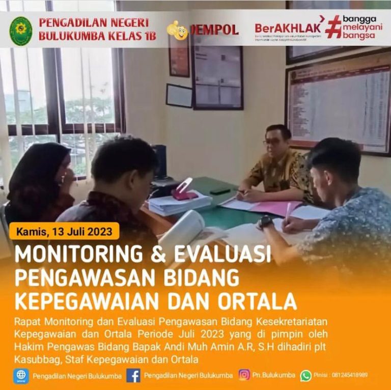 Bulukumba, Kamis 13 Juli 2023.Rapat monitoring dan evaluasi sub bagian kepegawaian dan ortala periode Juli 2023 yang...