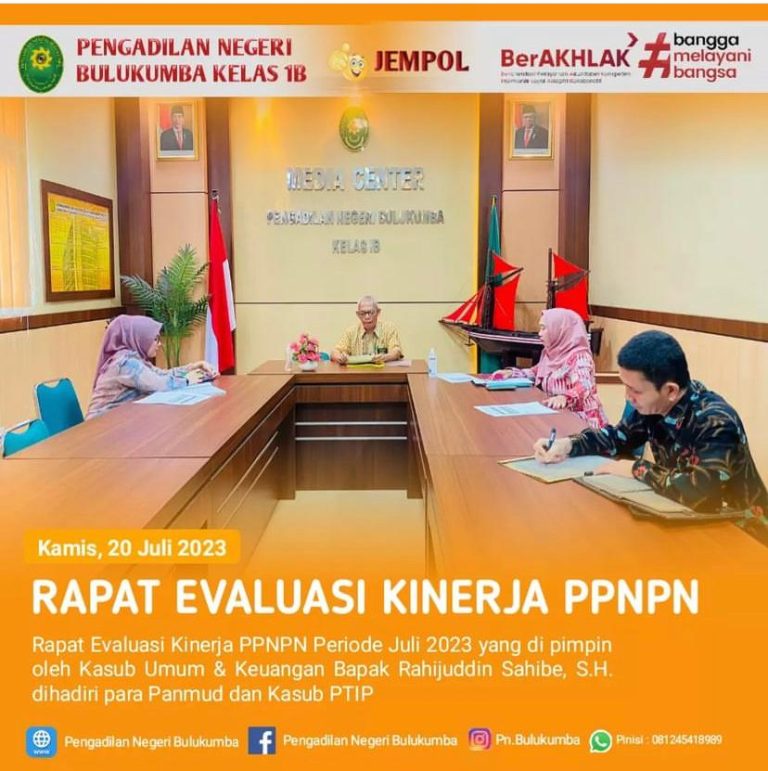 Bulukumba, Kamis 20 Juli 2023. Bertempat di Ruang Media Center, telah dilaksanakan Rapat Evaluasi Kinerja PPNPN...