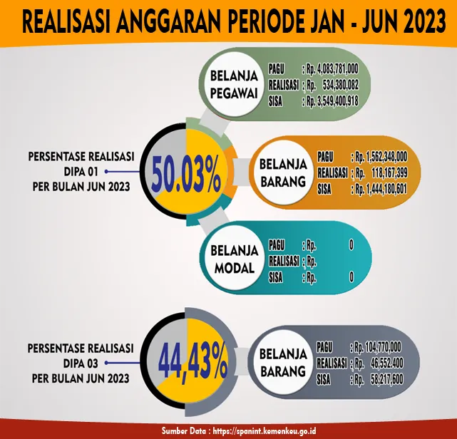 Infografis Realisasi Anggaran DIPA 01 & DIPA 03 Periode Januari – Juni Tahun 2023