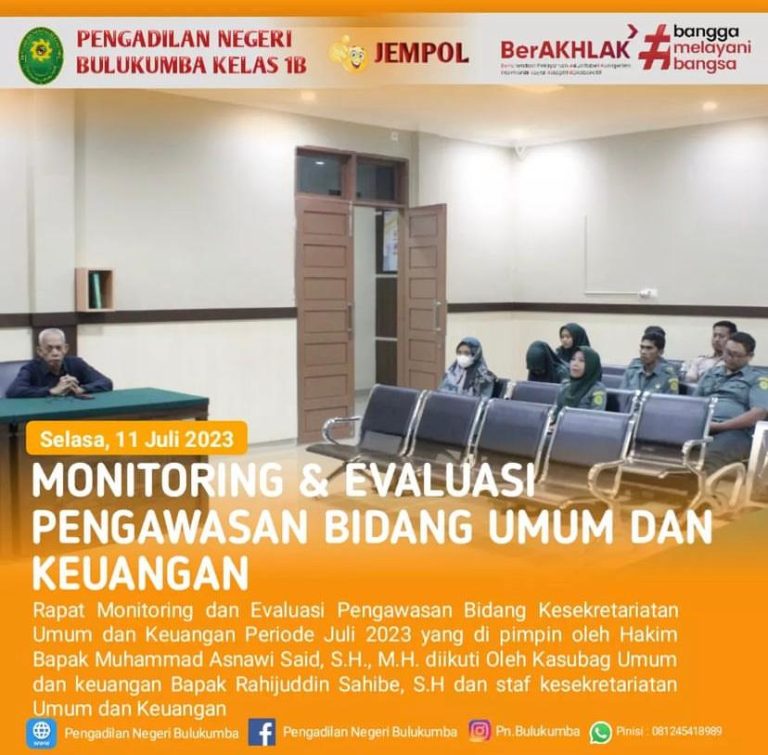 Monitoring dan Evaluasi Pengawasan Bidang Umum & Keuangan Periode Juli 2023