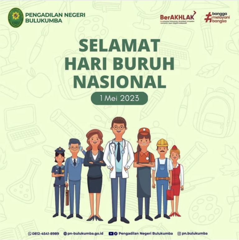 Segenap Pimpinan dan Keluarga Besar Pengadilan Negeri Bulukumba mengucapkan Selamat Hari Buruh Nasional 1 Mei 2023...
