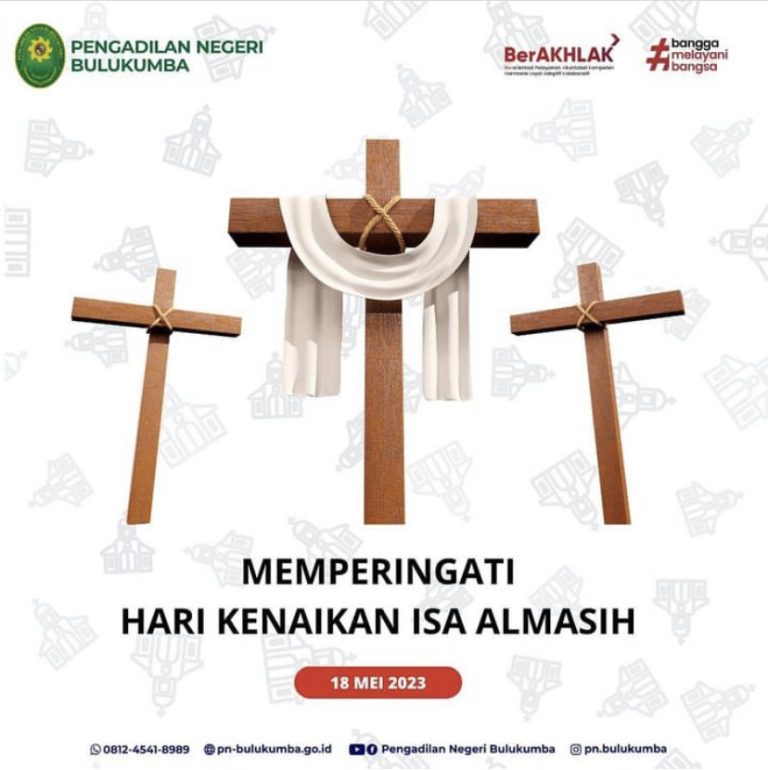 Segenap Pimpinan dan Keluarga Besar Pengadilan Negeri Bulukumba mengucapkan Selamat Hari Kenaikan Isa Almasih 18 Mei...