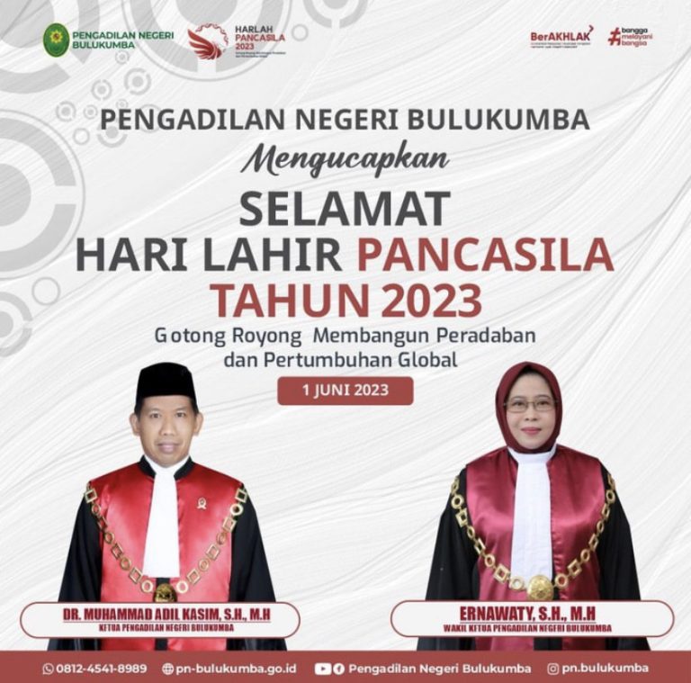 Segenap Pimpinan dan Keluarga Besar Pengadilan Negeri Bulukumba mengucapkan Selamat Memperingati Hari Lahir Pancasila “Gotong Royong...