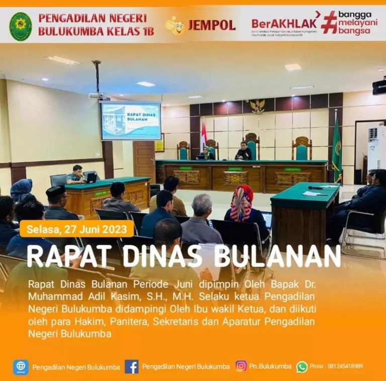 Bulukumba, Selasa 27 Juni 2023. Bertempat di Ruang Sidang Utama, telah dilaksanakan Rapat Dinas Bulan...