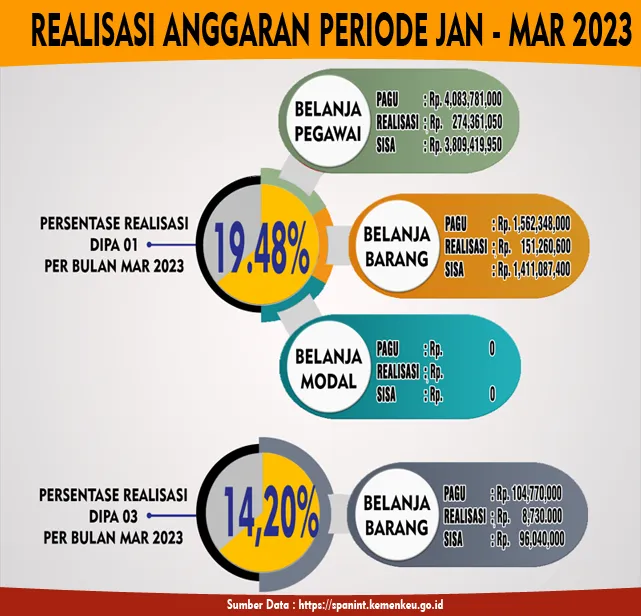 Infografis Realisasi Anggaran DIPA 01 & DIPA 03 Periode Januari – Maret Tahun 2023