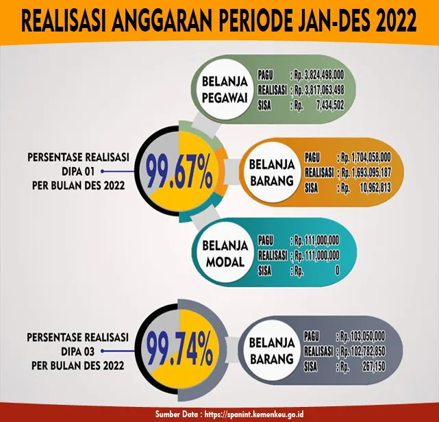 Infografis Realisasi Anggaran DIPA 01 & DIPA 03 Periode Januari – Desember Tahun 2022