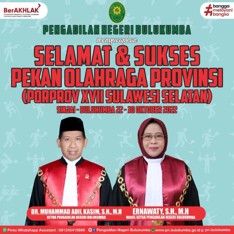 Segenap Pimpinan dan Keluarga Besar Pengadilan Negeri Bulukumba mengucapkan Selamat dan Sukses Pekan Olahraga Provinsi (PORPROV)...