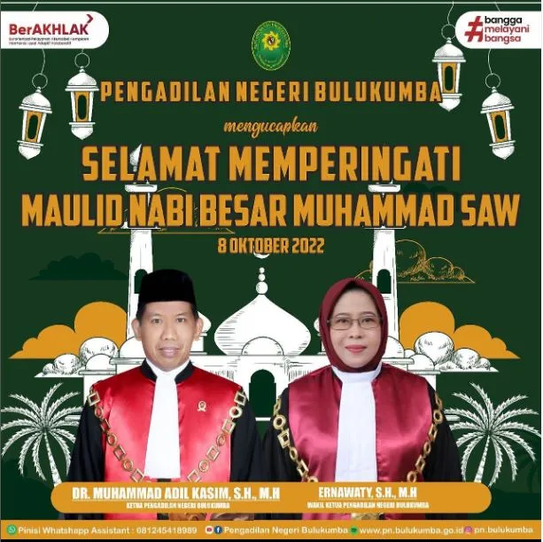 Segenap Pimpinan dan Keluarga Besar Pengadilan Negeri Bulukumba mengucapkan Selamat Memperingati Maulid Nabi Besar Muhammad SAW...