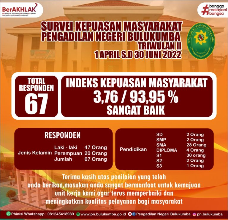 Hasil Survei Kepuasan masyarakat dan Persepsi Anti Korupsi Triwulan II Tahun 2022 PN Bulukumba