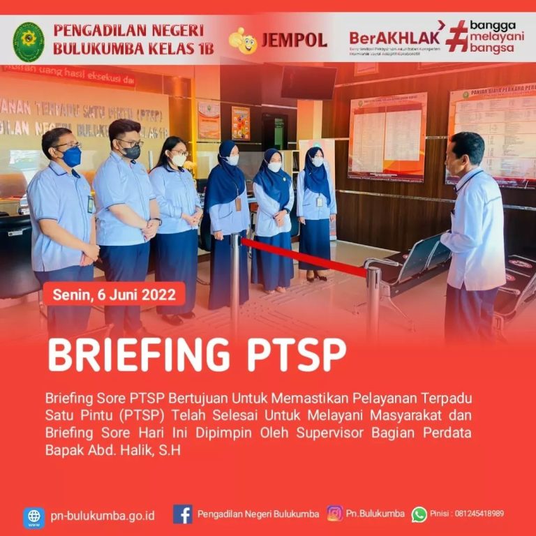 Bulukumba, Senin 06 Juni 2022. Briefing sore tim petugas PTSP dipimpin oleh Bp. Abd. Halik, S,H.,...