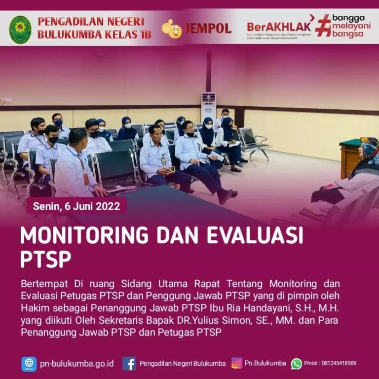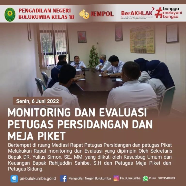 Bulukumba, Senin 6 Juni 2022.Bertempat di ruang sidang utama Pengadilan Negeri Bulukumba telah dilaksanakan Monitoring dan...