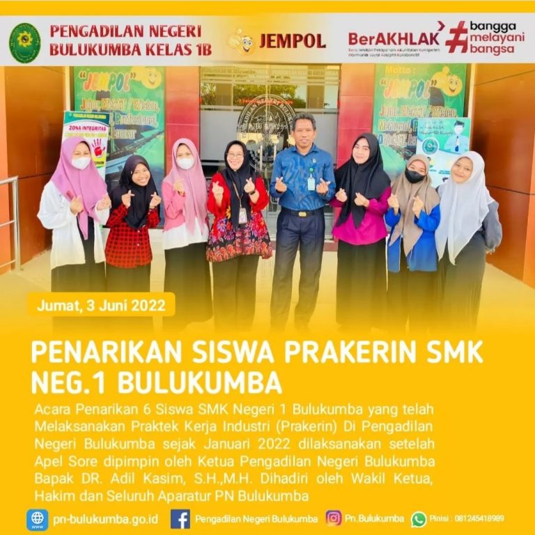 Bulukumba, Jumat 2 Juni 2022. Bertempat di halaman Pengadilan Negeri Bulukumba telah dilaksanakan acara 6 siswa...