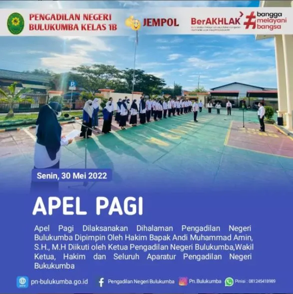 Bulukumba, Senin 30 Mei 2022. Apel pagi dipimpin oleh Bp. Andi Amin AR., S,H., MH., (Hakim...