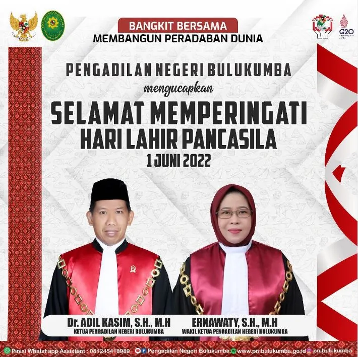 Segenap Pimpinan dan Keluarga Besar Pengadilan Negeri Bulukumba mengucapkan Selamat Hari Lahir Pancasila. Ayo, kita hidupkan...