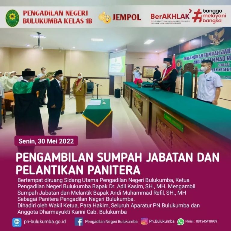 Pengambilan Sumpah Jabatan dan Pelantikan Bp. Andi Muhammad Refil S.H. M.H. Sebagai Panitera Pengadilan Negeri Bulukumba