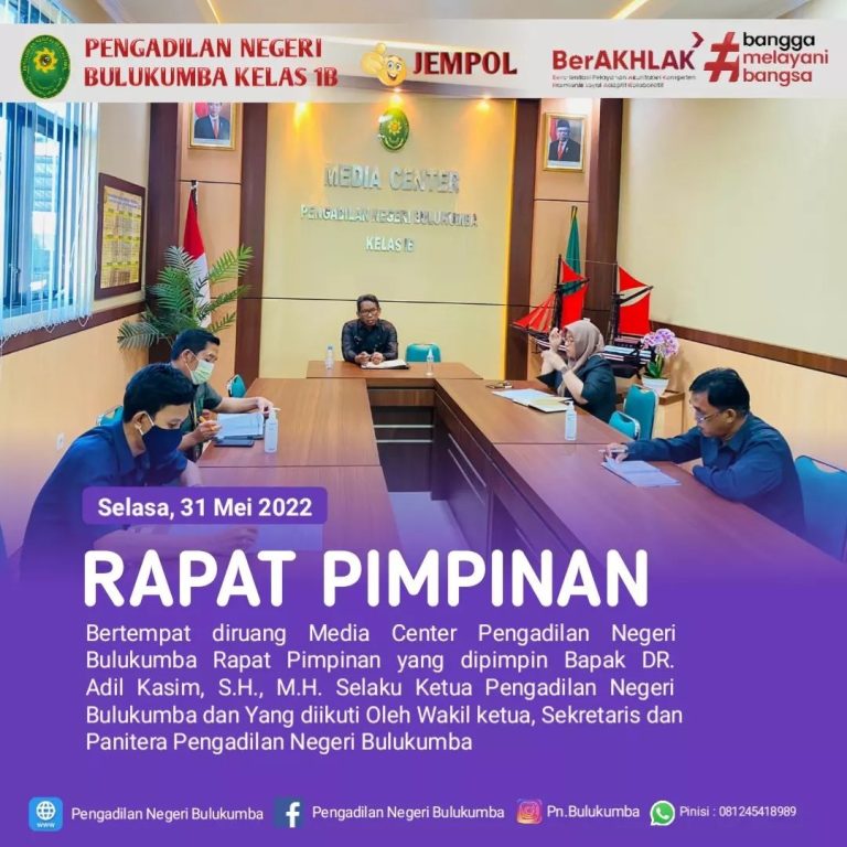 Bulukumba, Selasa 31 Mei 2022. Telah dilaksanakan Rapat Pimpinan periode Mei Tahun 2022 yang dipimpin oleh Ketua...