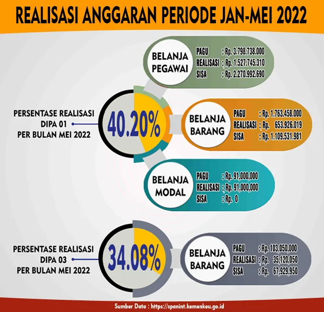Infografis Realisasi Anggaran DIPA 01 dan DIPA 03 Periode Januari – Mei Tahun 2022