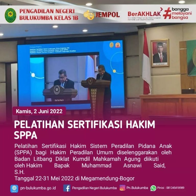 Bulukumba, Kamis 2 Juni 2022. Pelatihan Sertifikasi Hakim Sistem Peradilan Pidana Anak (SPPA) bagi Hakim Peradilan...