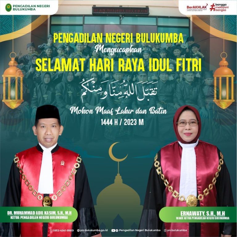 Pimpinan dan Seluruh Keluarga Besar Pengadilan Negeri Bulukumba mengucapkan Selamat Hari Raya Idul Adha 1445 H – 2024…