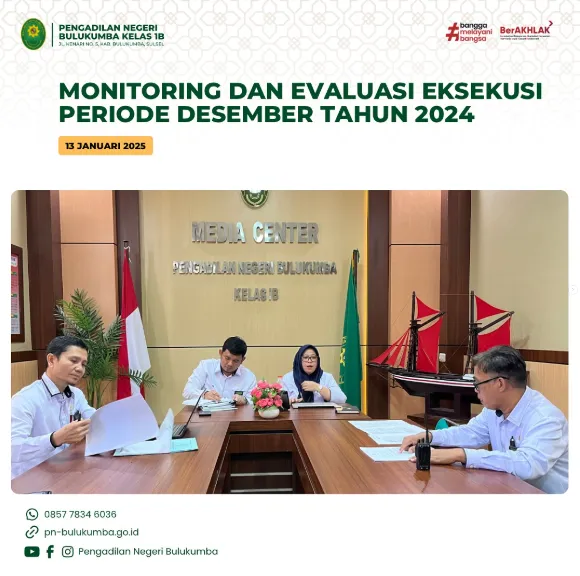 Bulukumba, 13 Januari 2025 Telah dilaksanakan kegiatan rapat monev eksekusi periode Desember 2024 yang dipimpin oleh Ketua Pengadilan…