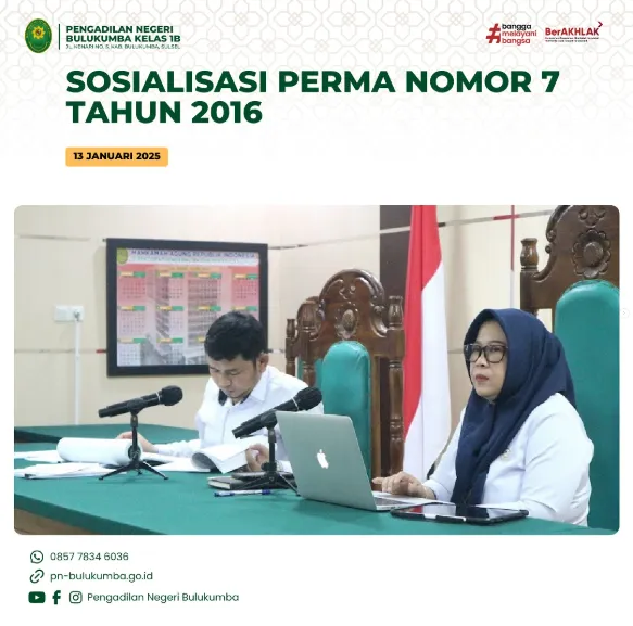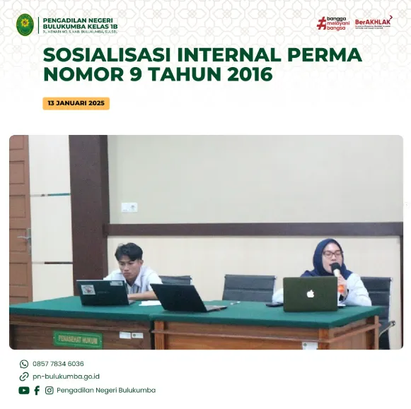 {Play}Bulukumba, 13 Januari 2025 bertempat di Kantor Pengadilan Negeri Bulukumba, telah dilaksanakan Sosialisasi internal PERMA NOMOR 7 TAHUN…