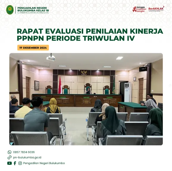 Bulukumba, 17 Desember 2024 bertempat di Pengadilan Negeri Bulukumba, diselenggarakan Rapat Monev Kinerja PPNPN Periode Triwulan IV Tahun…