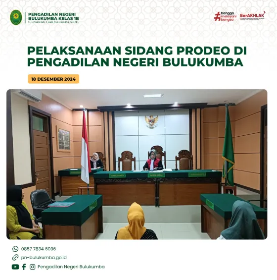 Bulukumba, 18 Desember 2024 Pengadilan Negeri Bulukumba telah melaksanakan sidang Perkara Prodeo. Kegiatan ini dipimpin oleh Fitriana, S.H.,…