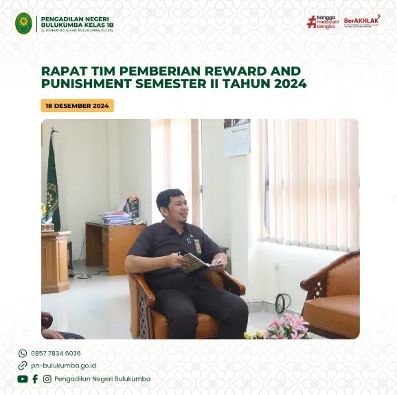 Bulukumba, 18 Desember 2024 bertempat di Kantor Pengadilan Negeri Bulukumba telah dilaksanakan Rapat Pemberian Reward and Punishment Periode…