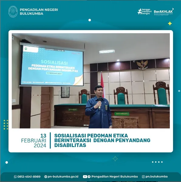 Bulukumba, Selasa, 13 Februari 2024 bertempat di Ruang Sidang Utama Pengadilan Negeri Bulukumba telah dilaksanakan Sosialisasi terkait Pedoman…