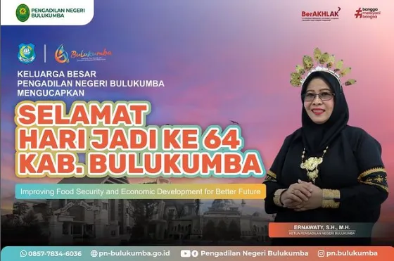 Keluarga Besar Pengadilan Negeri Bulukumba mengucapkan Selamat Hari Jadi ke-64 Tahun Kabupaten Bulukumba. “Improving Food Security and Economic…