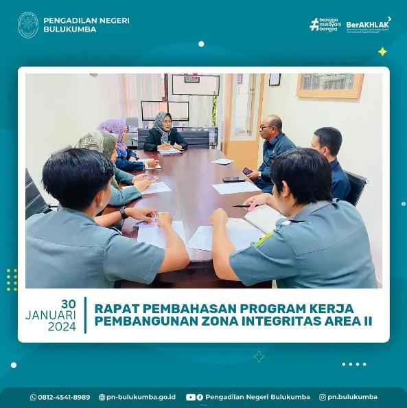 Bulukumba, Selasa 30 Januari 2024 telah dilaksanakan Rapat Pembahasan Program Kerja Pembangunan Zona Integritas Area 2. AREA II…
