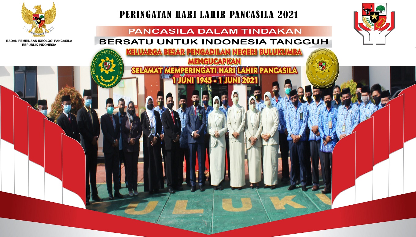 Selasa, 1 Juni 2021. Pengadilan Negeri Bulukumba Mengucapkan Selamat Memperingati Hari Lahir Pancasila 1 Juni 2021, Pancasila Dalam Tindakan Bersatu Untuk Indonesia Tangguh