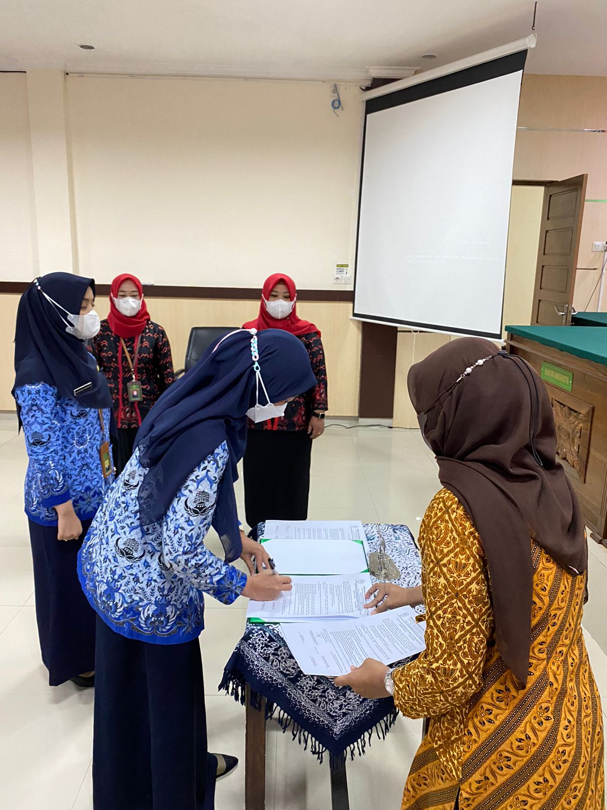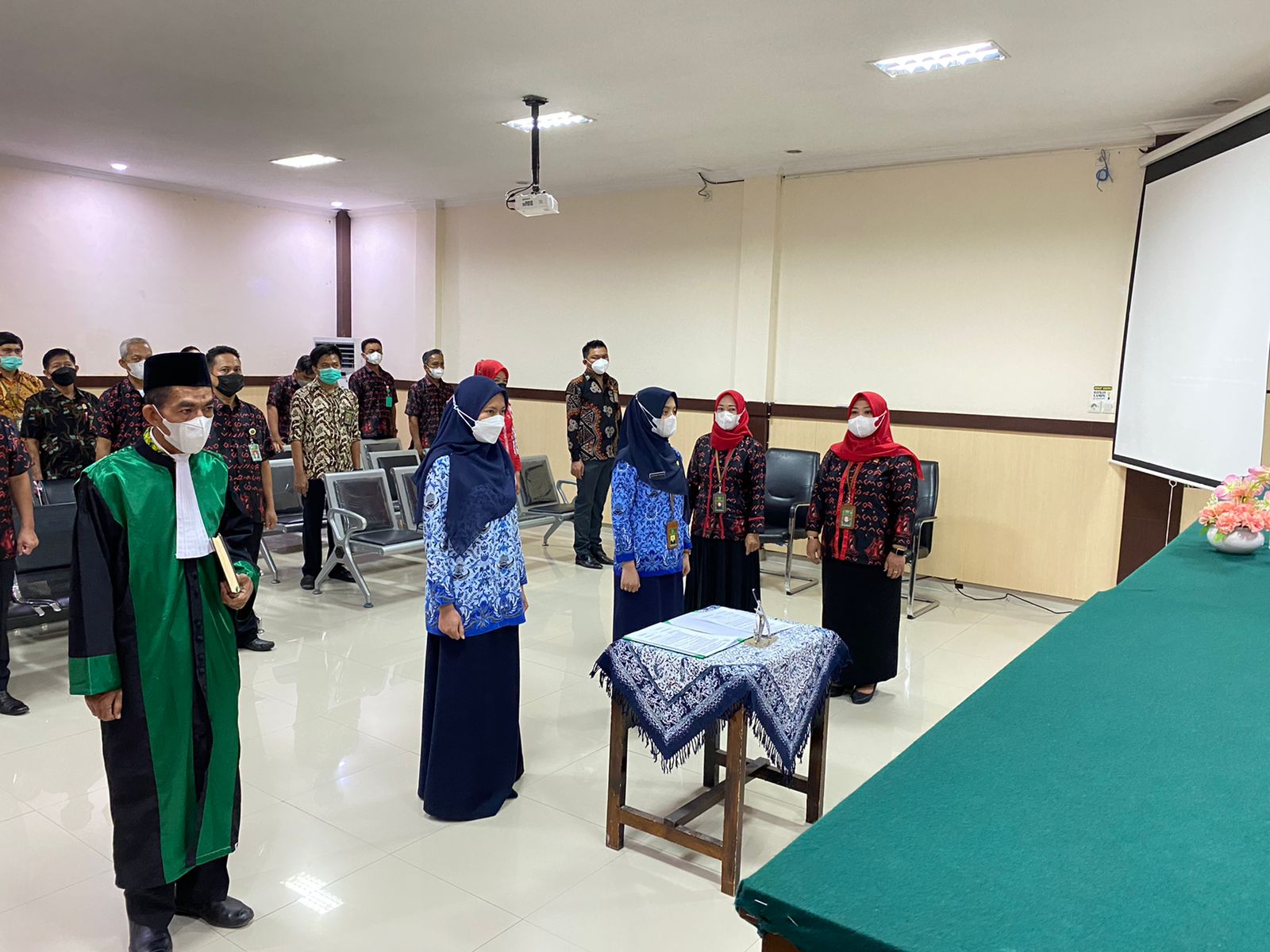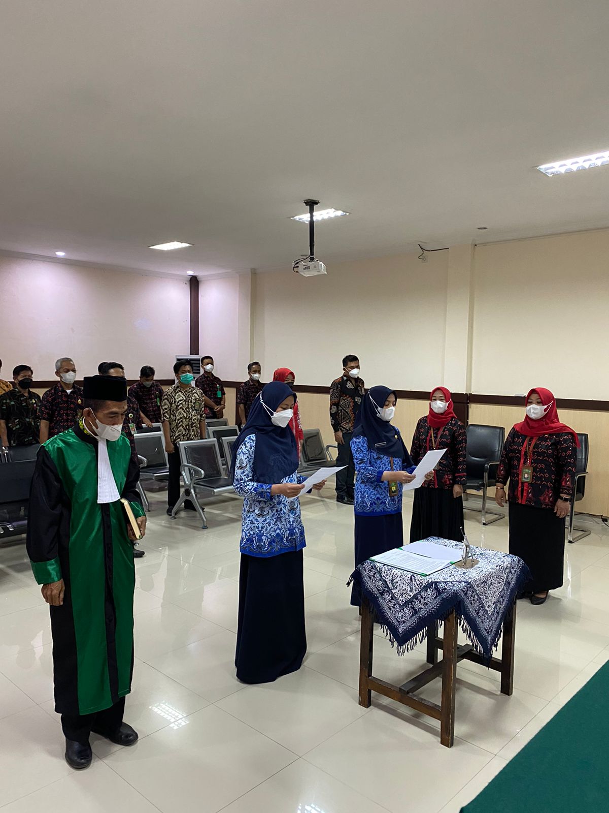 Bulukumba 13 Januari 2022,Bertempat di sidang Pengadilan Agama Negara pukul 09.00 WITA dilaksanakan Pengambilan Sumpah Pegawai Negeri Sipil Anggraeni Triningsih, S.Kom. dan Shelinda Oktaria, A.Md yang telah melewati masa 1 (satu) tahun sebagai Calon Pegawai Negeri Sipil. Pelaksanaan Pengambilan Sumpah Pegawai Negeri Sipil dengan jabatan Pranata Komputer dan Arsparis ini dipimpin oleh Bpk. Adil Kasim, S.H, M.H. Ketua Pengadilan Negeri Bulukumba dan diikuti oleh segenap pegawai Pengadilan Negeri Bulukumba