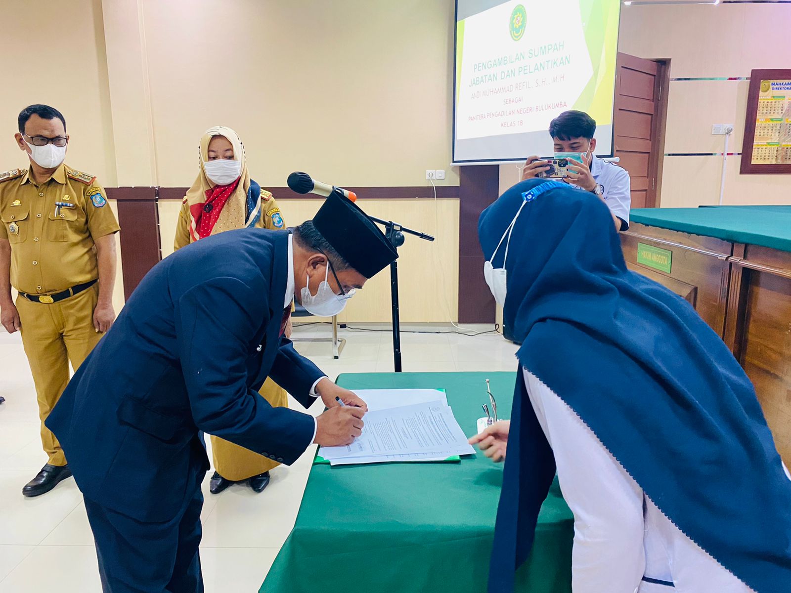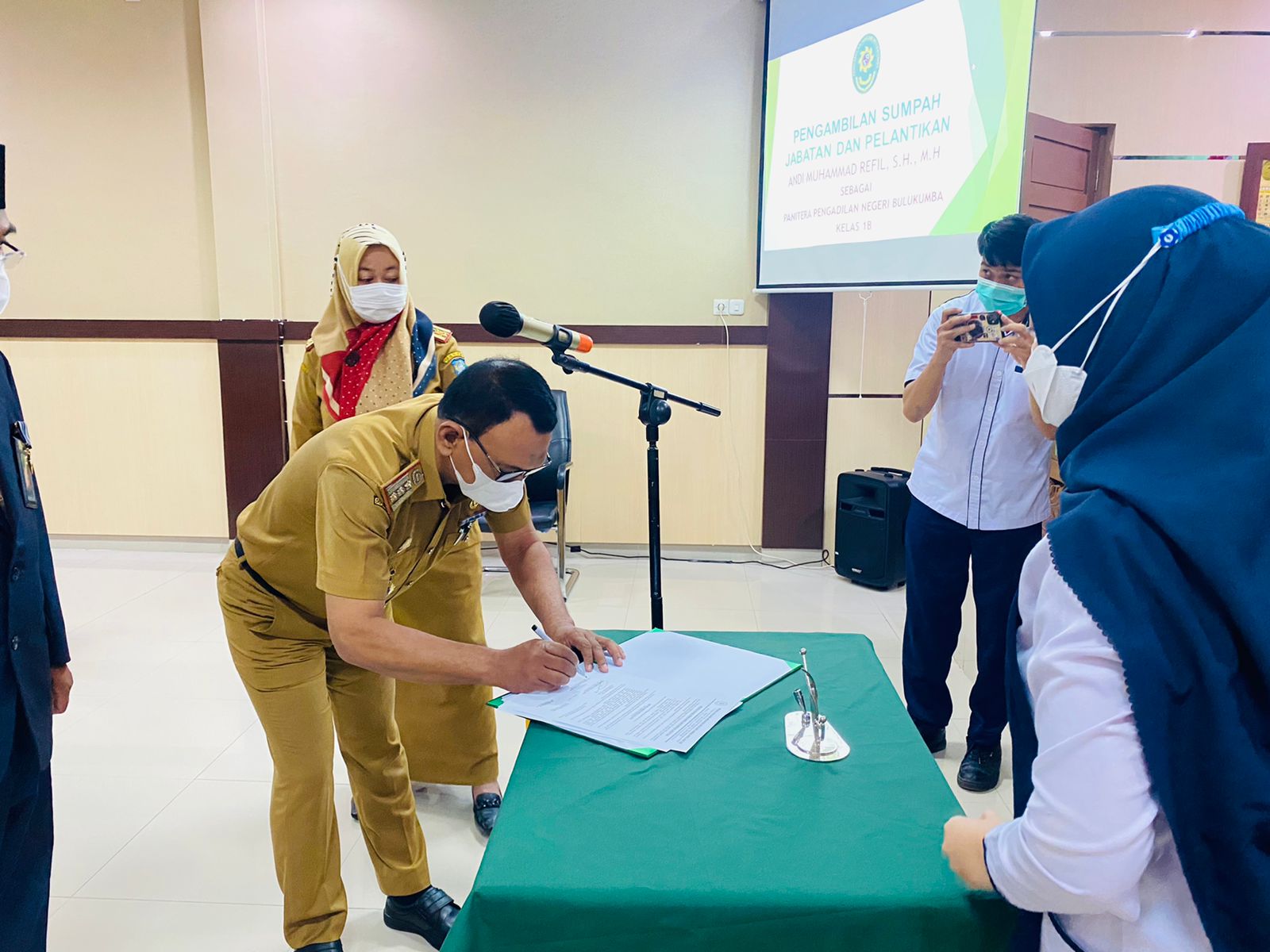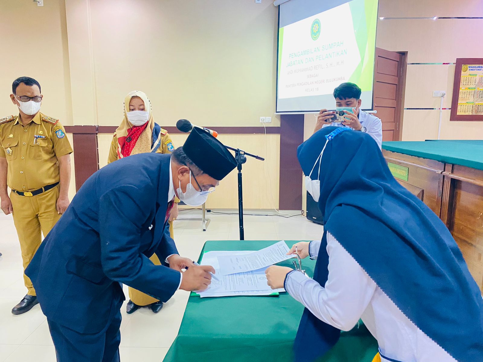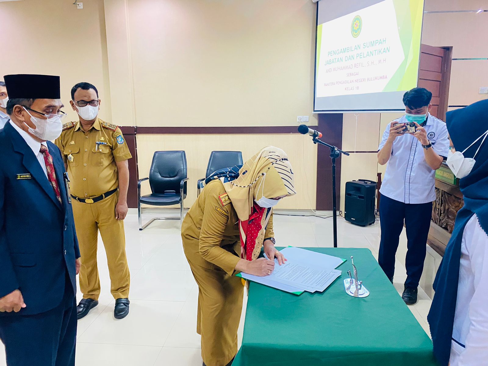 Acara Pengambilan Sumpah Jabatan dan Pelantikan ini di dampingi oleh rohaniwan Bapak Ambo Pejabat Kemenag Kabupaten Bulukumba. Selanjutnya dilaksanakan Penanda Tanganan Berita Acara Pengambilan Sumpah Jabatan Panitera dan Penanda Tanganan Pakta Integritas.