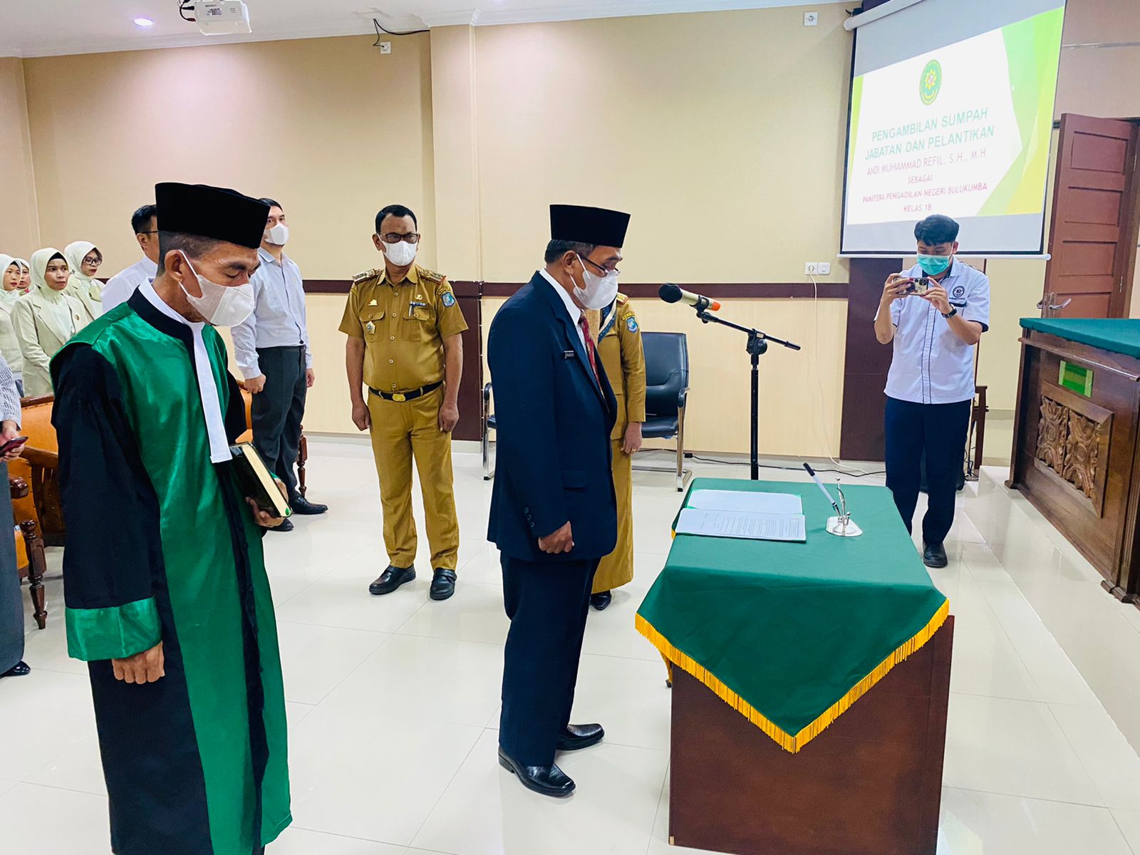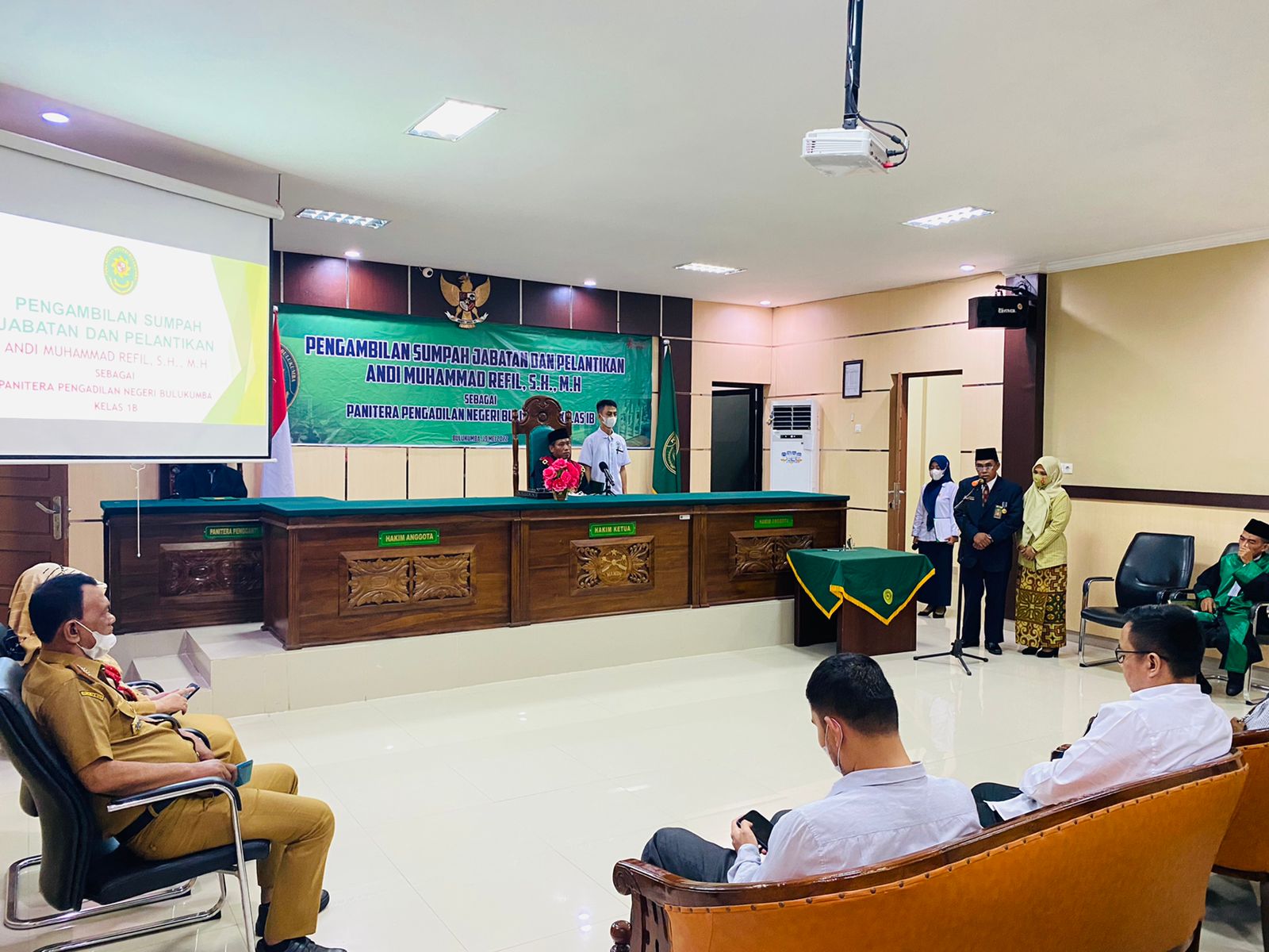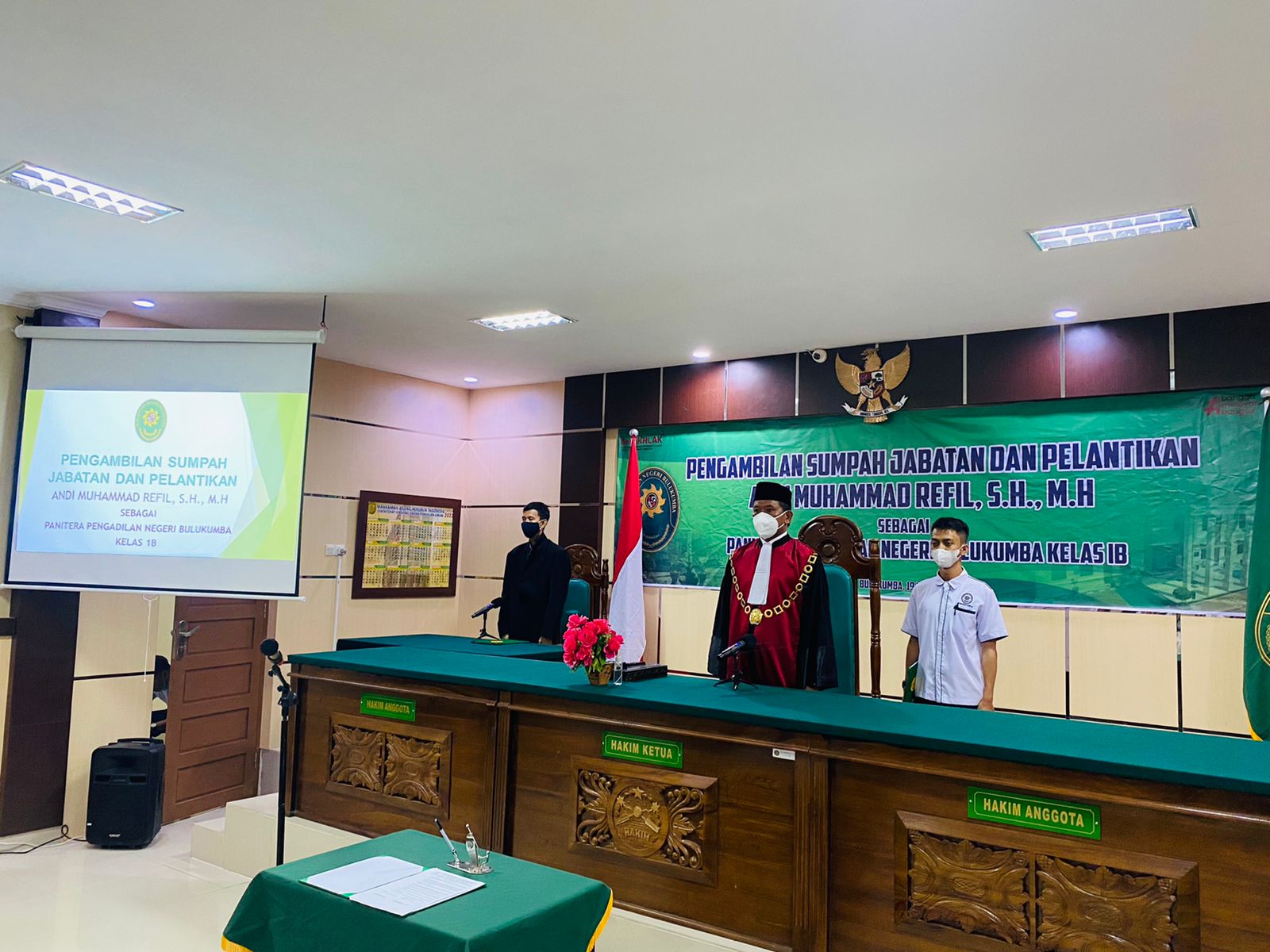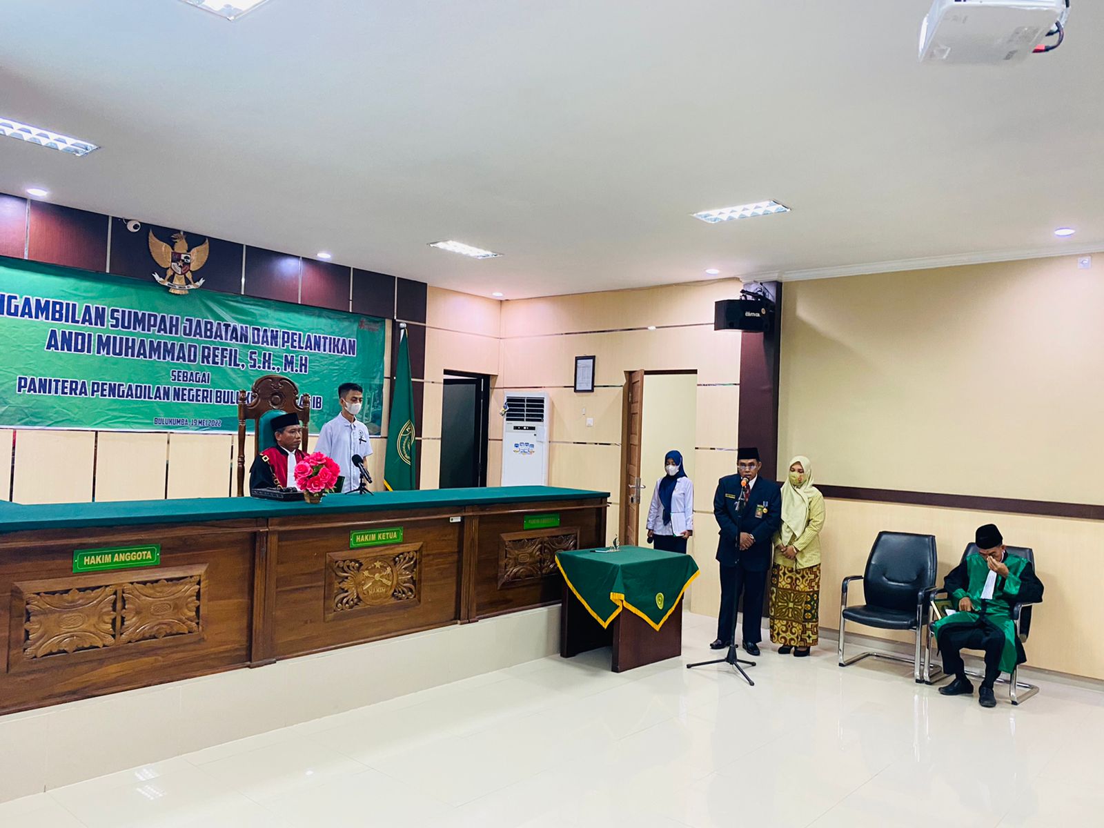 Senin 30 Mei 2022, pukul 08.30 WITA, bertempat di Ruang Sidang Cakra telah dilaksanakan Upacara Pengambilan Sumpah Jabatan dan Pelantikan Panitera yaitu Bapak Andi Muhammad Refil, SH., MH sebagai Panitera Pengadilan Negeri Bulukumba oleh Ketua Pengadilan Negeri Bulukumba Bapak Dr. Adil Kasim, SH., MH.