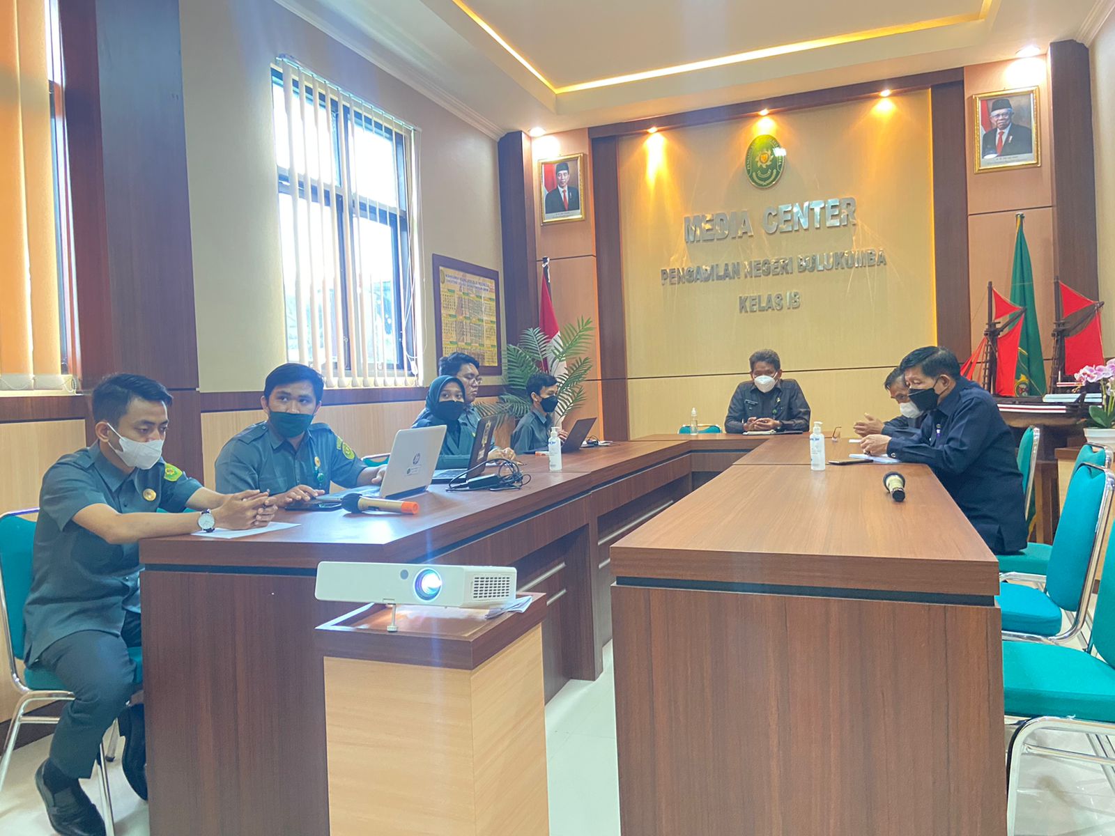 Bulukumba – Selasa, 14 Juni 2022 Bertempat di ruang Media Center, Ketua Pengadilan Negeri Bulukumba Bapak Dr. Muhammad Adil Kasim, S.H.,M.H. didampingi oleh Panitera, Panitera Muda Pidana, Staf Kepaniteraan Pidana dan Staf IT mengikuti sosialisasi sistem Elektronik Berkas Pidana Terpadu (e-Berpadu) yang diselenggarakan oleh Biro Humas Mahkamah Agung secara daring.