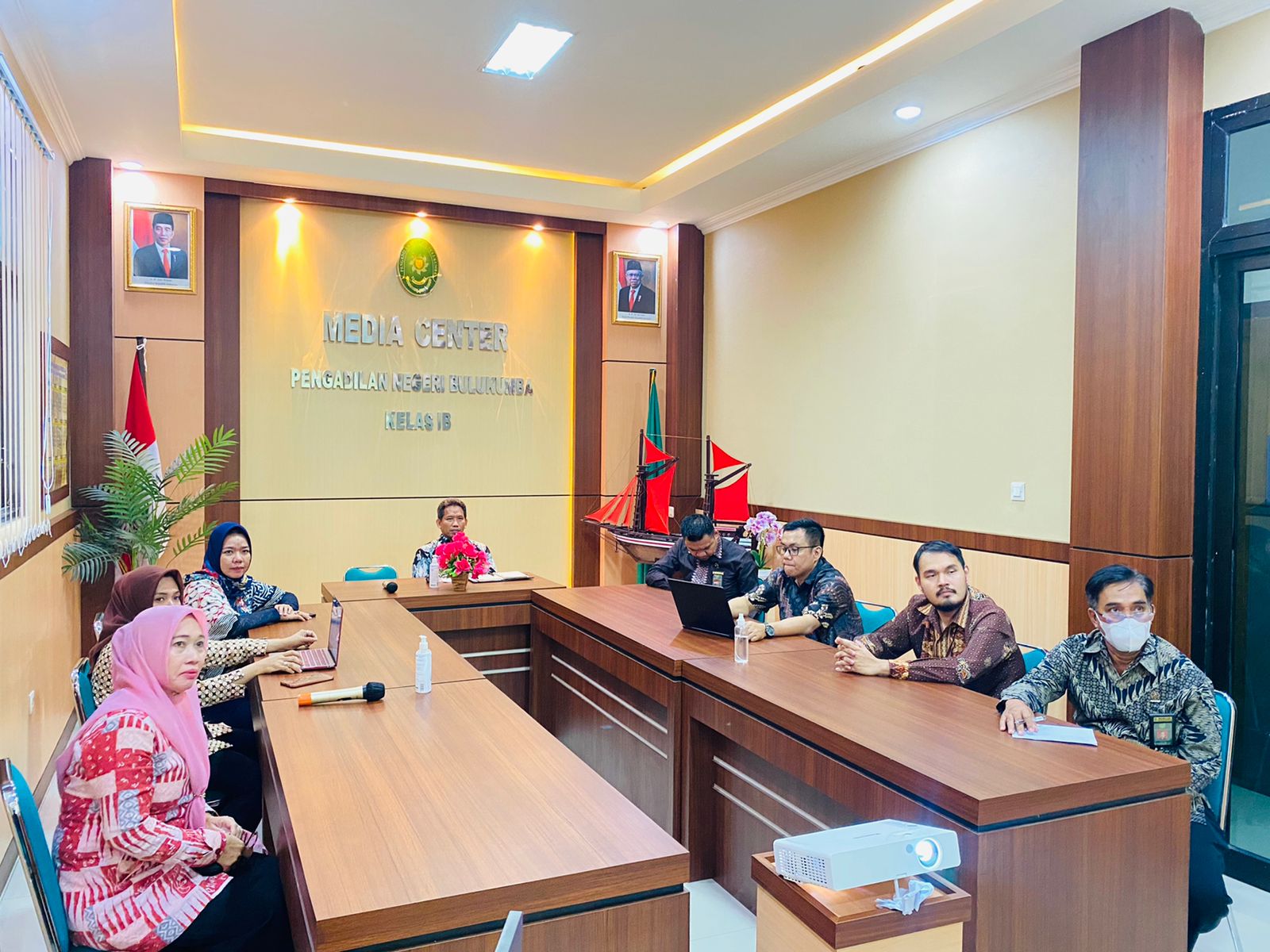 Bertempat di Ruang Media Center Pengadilan Negeri Bulukumba, Ketua Pengadilan Negeri Bulukumba Bp. Dr. Muhammad Adil Kasim, S.H., M.H. beserta para Hakim, Panitera dan Plt. Sekretaris mengikuti acara Pembinaan Teknis dan Administrasi Secara Virtual Oleh Pimpinan Mahkamah Agung RI