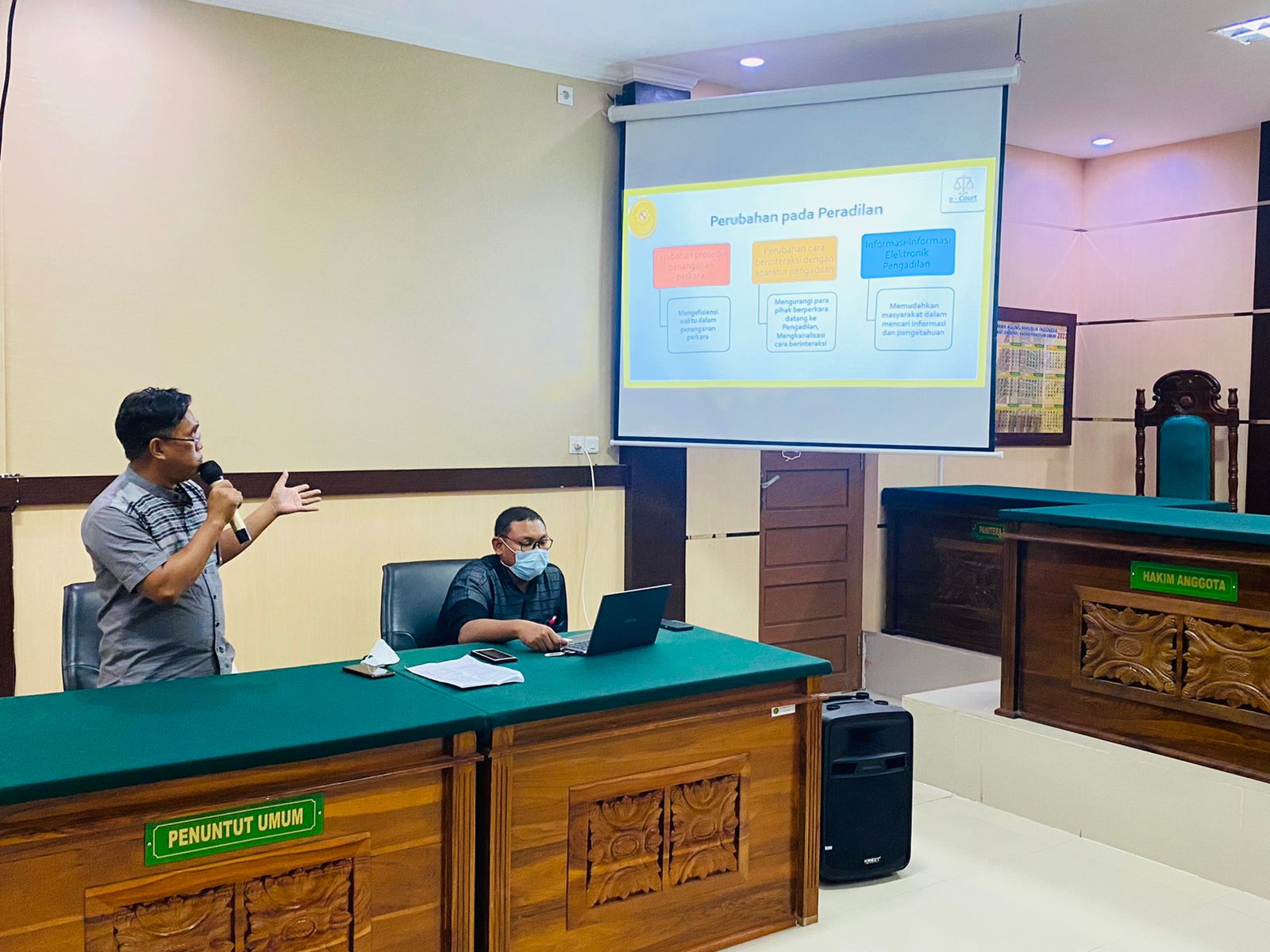 Bertempat di Ruang Sidang Utama Pengadilan Negeri Bulukumba telah dilaksanakan kegiatan Sosialisasi E-Court dan E-Litigasi, bertindak sebagai pemateri Bp. Andi Muhammad Refil, S.H., M.H. dan dihadiri oleh Ketua Pengadilan Negeri Bulukumba, Para Hakim, Panitera, Pejabat Strukural/Fungsional dan Seluruh Staf Kepaniteraan/Kesekretariatan Pengadilan Negeri Bulukumba.