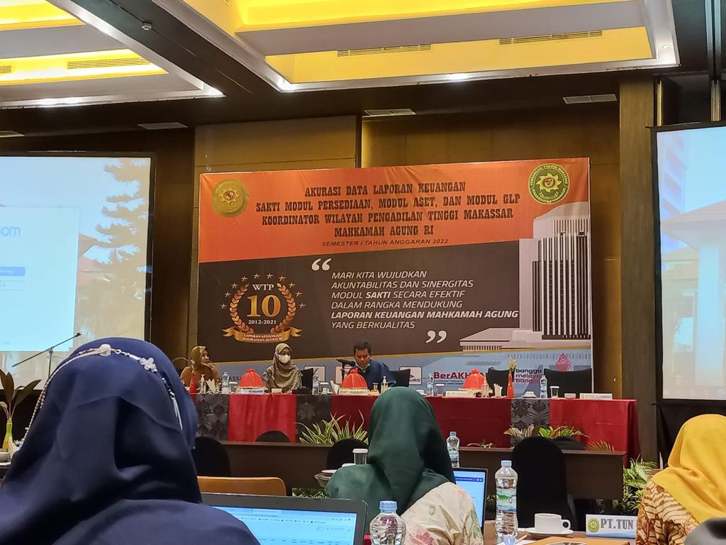 Bertempat di Ballroom Hotel Novotel Makassar, Sdr. Prihar Kartikaningtyas A.Md. AK. (Operator Persedian BMN) dan Sdr. Anisa Putri Utami, S.E. (Operator Pelaporan Keuangan) mengikuti kegiatan Kegiatan Akurasi Data Laporan Keuangan Modul Persediaan Modul Aset dan modul GLP Koordinator Wilayah Pengadilan Tinggi Makassar Periode Semester 1 TA.2022
