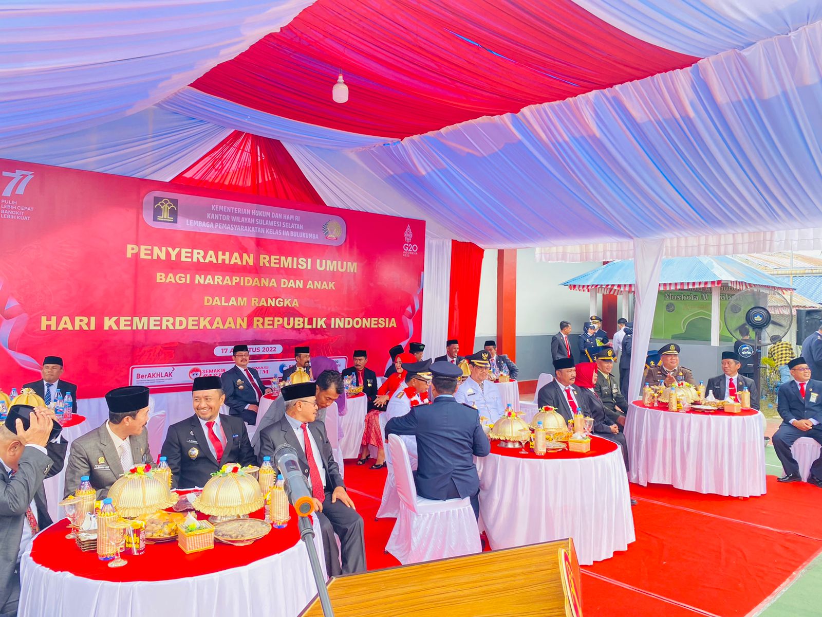 Bertempat di Lembaga Pemasyarakatan Kelas II A Bulukumba, Ketua Pengadilan Negeri Bulukumba Bpk. Dr. Adil Kasim, S.H., M.H menghadiri undangan rangkaian kegiatan HUT Kemerdekaan Republik Indonesia ke 77 yaitu penyerahan remisis tahanan Lembaga Pemasyarakatan Kelas II A Bulukumba yang diserahkan langsung oleh Bupati Bulukumba yang disaksikan oleh para Forkopimda Kab. Bulukumba
