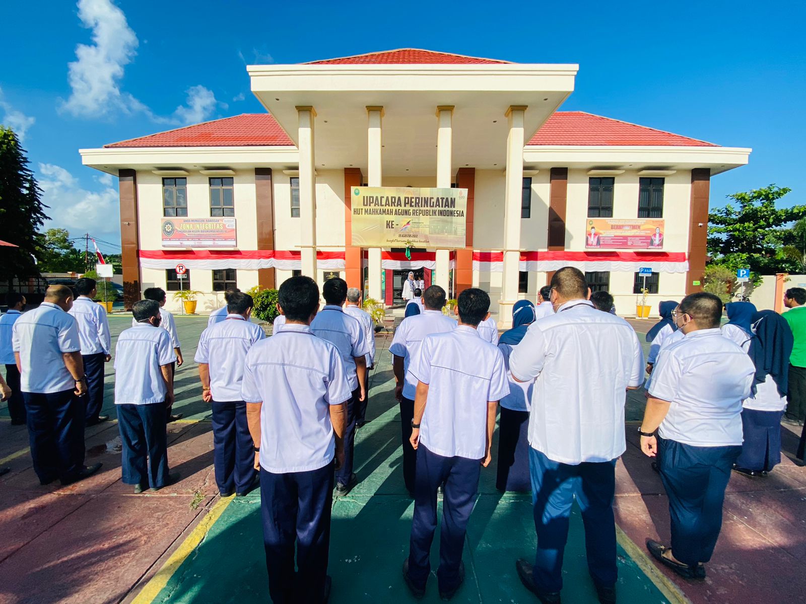Bulukumba, Senin 15 Agustus 2022. Apel pagi dipimpin oleh Ibu Fitriana, S,H., M.H. (Hakim Pengadilan Negeri Bulukumba) yang diikuti oleh Pimpinan, Hakim, Pejabat Struktural maupun Fungsional, Pegawai serta PPNPN