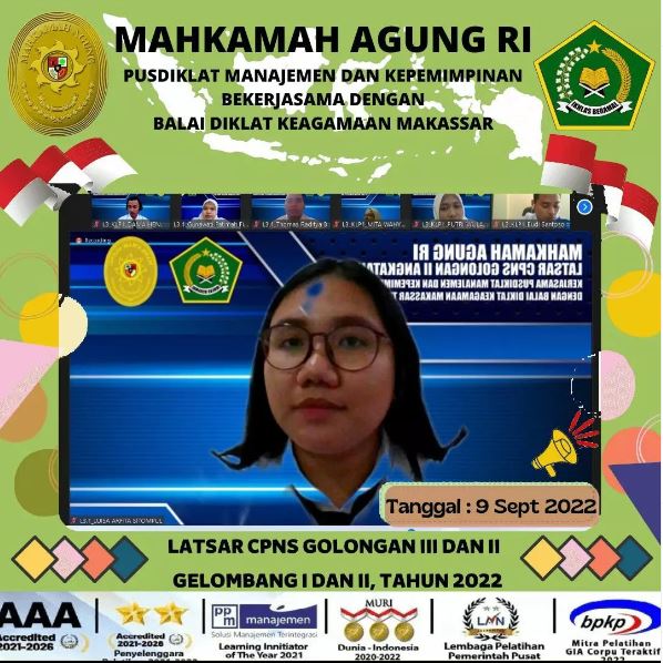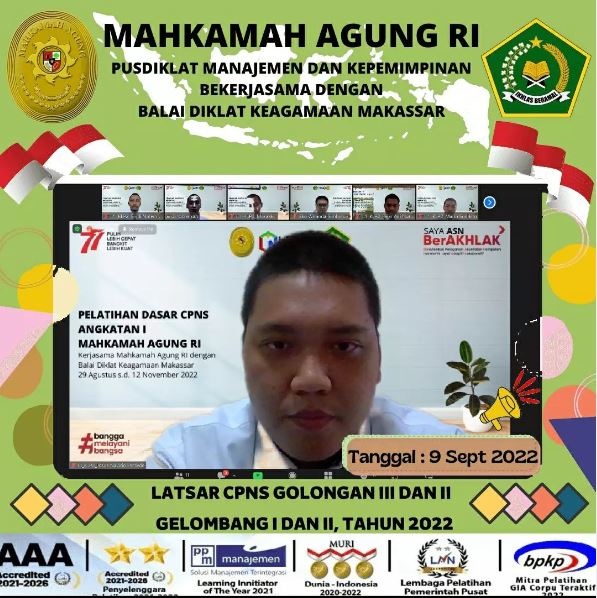 CPNS Pengadilan Negeri Bulukumba T.A 2022 mengikuti rangkaian kegiatan Pusdiklat Manajemen dan Kepemimpinan Gelombang II dan III Angkatan V Tahun 2022 yang diselenggarkan oleh Mahkamah Agung RI bekerjasama dengan Balai Diklat Keagamaan Makassar