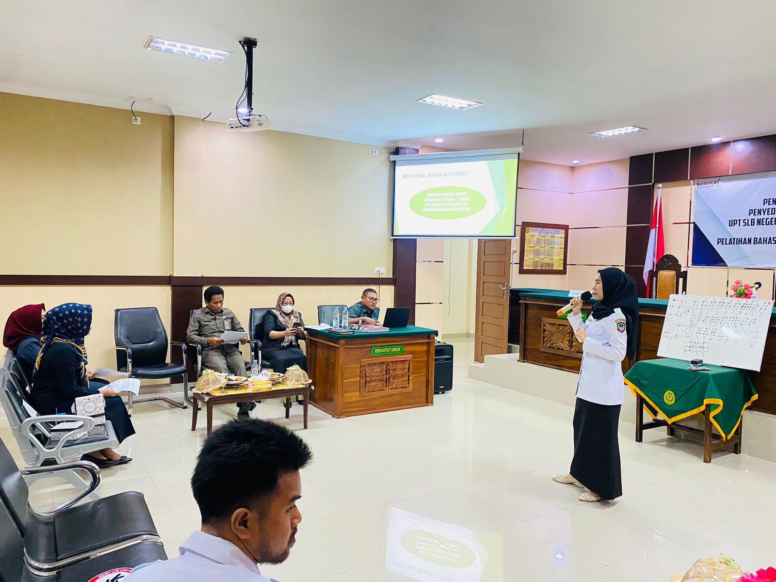 Bulukumba, Rabu 26 Oktober 2022. Bertempat di ruang sidang utama Pengadilan Negeri Bulukumba telah dilaksanakan pelatihan dasar ahasa isyarat dan pengenalan huruf braille sebagai rangkaian kerja sama penyediaan layanan bagi penyandang disabilitas antara Pengadilan Negeri Bulukumba dengan UPT SLB Negeri 1 Bulukumba