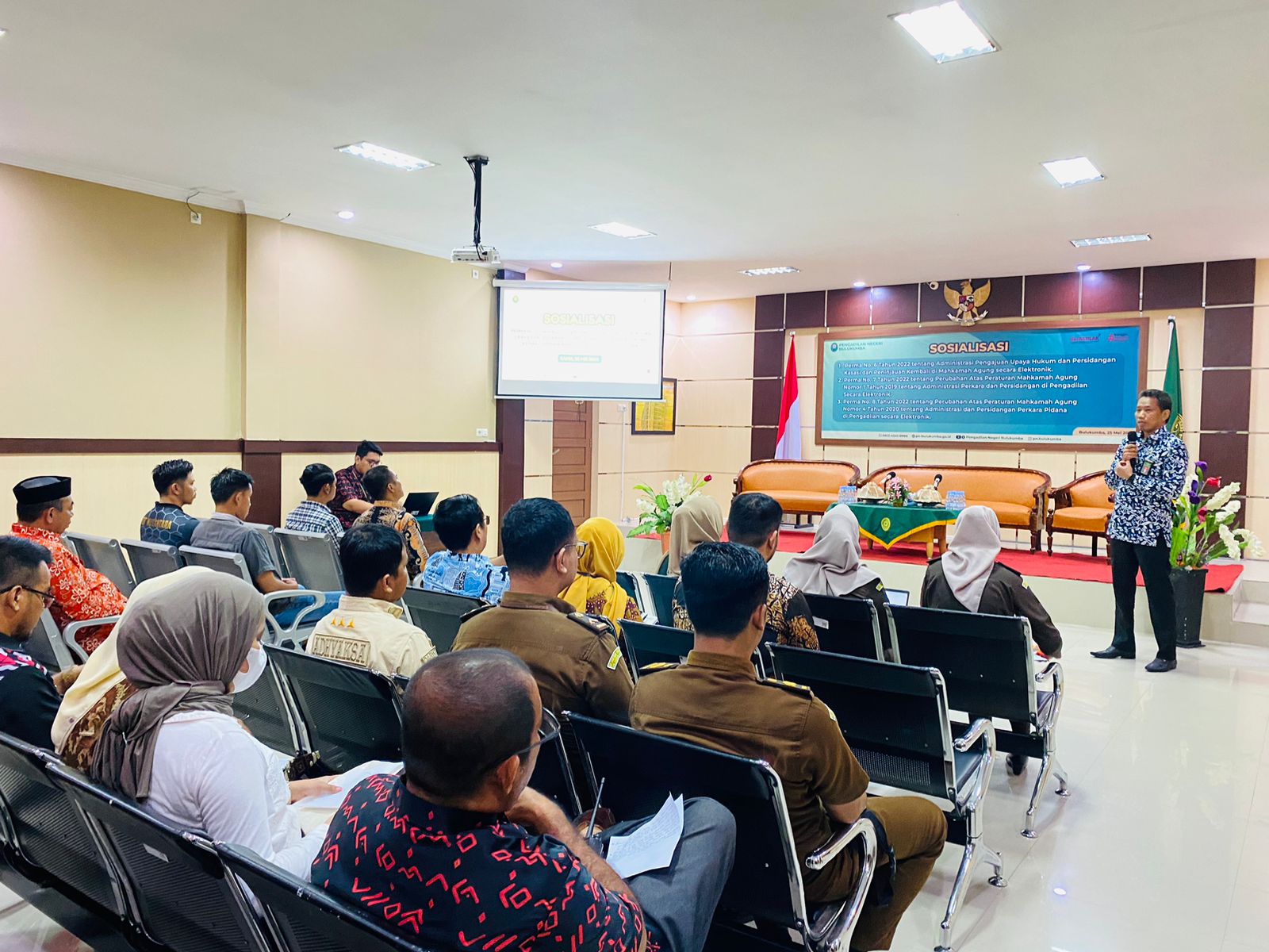 Ketua Pengadilan Negeri Bulukumba Bapak Dr. Muhammad Adil Kasim, S.H., M.H. selaku pemateri dalam sosialisasi tersebut yang dihadiri oleh Kepala Kejaksaan Bulukumba, Kapolres Bulukumba, Kepala lapas Bulukumba dan Yayasan Lembaga Bantuan Hukum Bulukumba serta seluruh pegawai aparatur Pengadilan Negeri Bulukumba