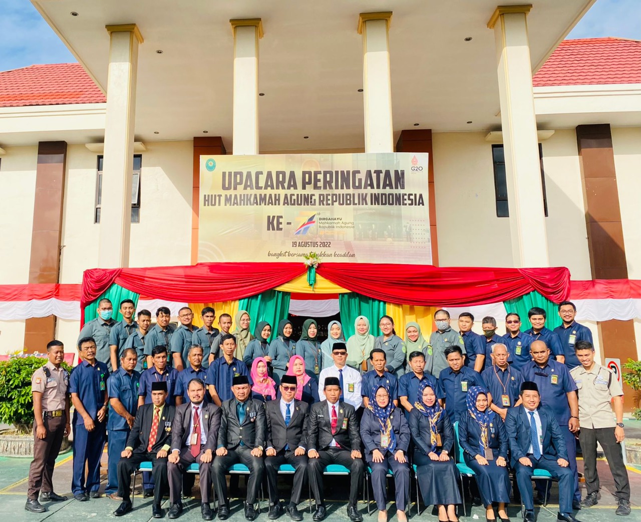 Rangkaian kegiatan peringatan HUT Ke 77 Mahkamah Agung Republik Indonesia dilanjutkan dengan acara Pemotongan Tumpeng oleh Ketua Pengadilan Negeri Bulukumba Bpk. Dr. Muhammad Adil Kasim, S.H., M.H . dan Wakil Ketua Pengadilan Negeri Bulukumba Ibu Ernawaty, S.H., M.H.