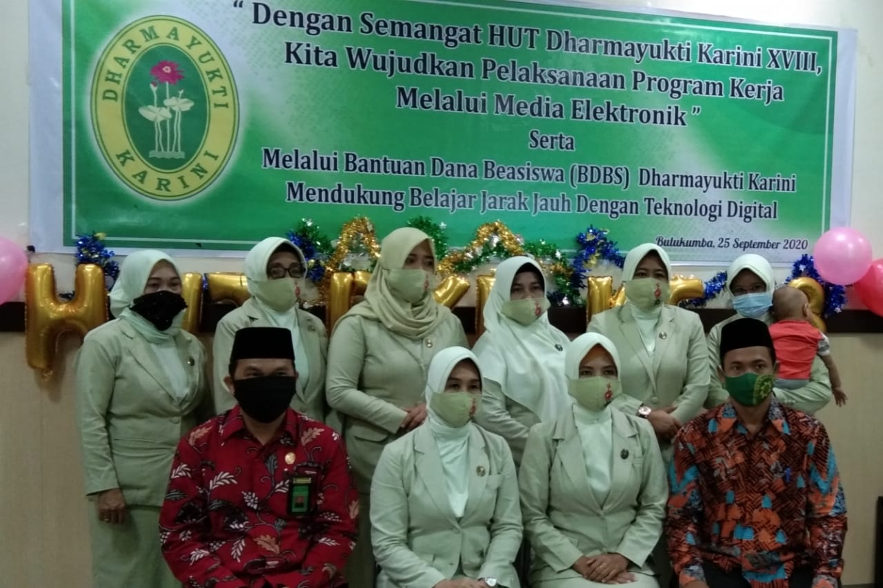 Jumat, 25 September 2020 DYK Cabang Bulukumba mengikuti pelaksanaan kegiatan Hari Ulang Tahun Dharmayukti Karini ke-18 tahun 2020 yang dirayakan secara virtual dengan menggunakan aplikasi zoom dengan tetap mematuhi protokol kesehatan.