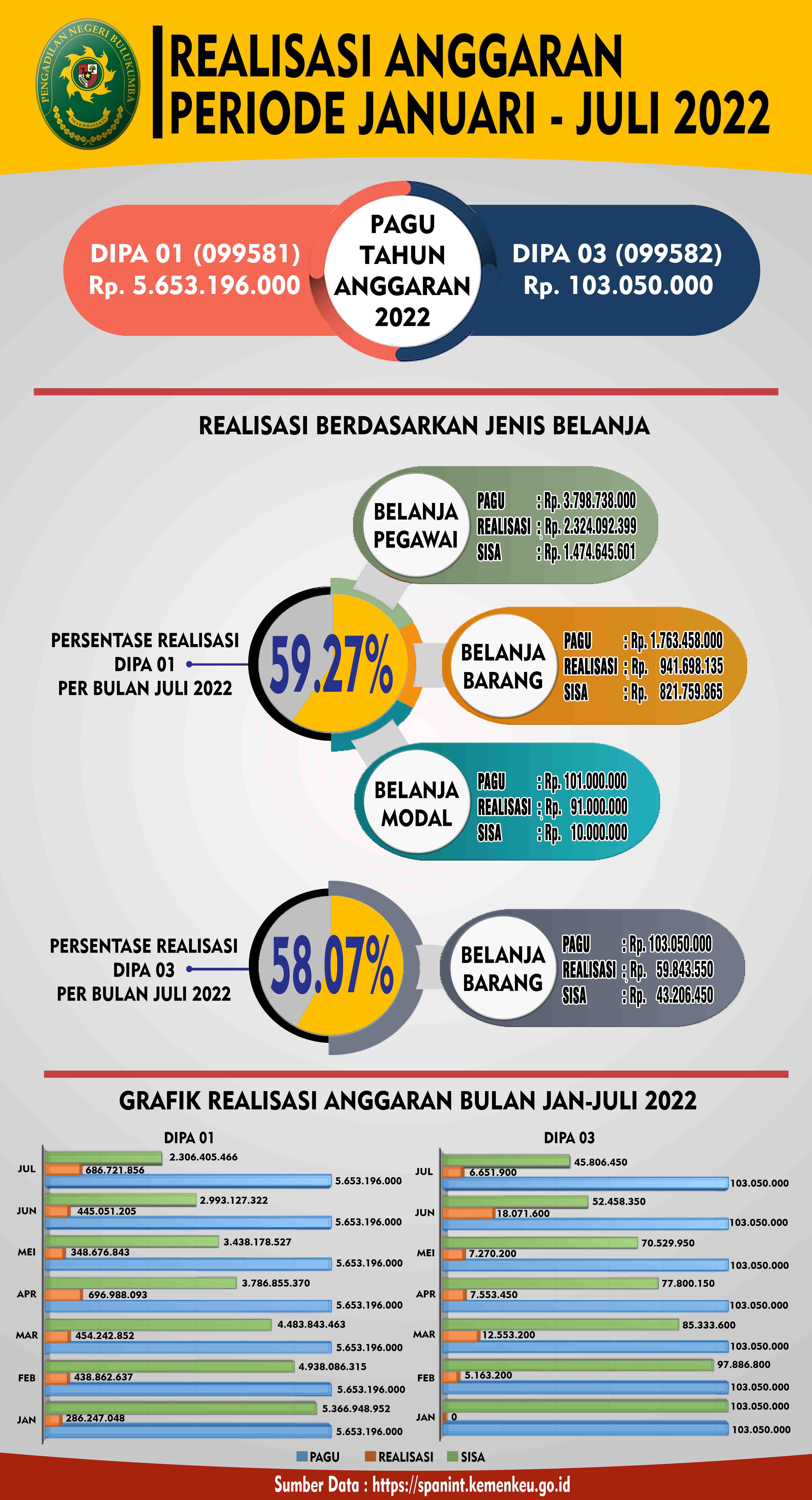 Infografis Realisasi Anggaran DIPA 01 dan DIPA 03 Pengadilan Negeri Bulukumba per Bulan Juli Tahun 2022